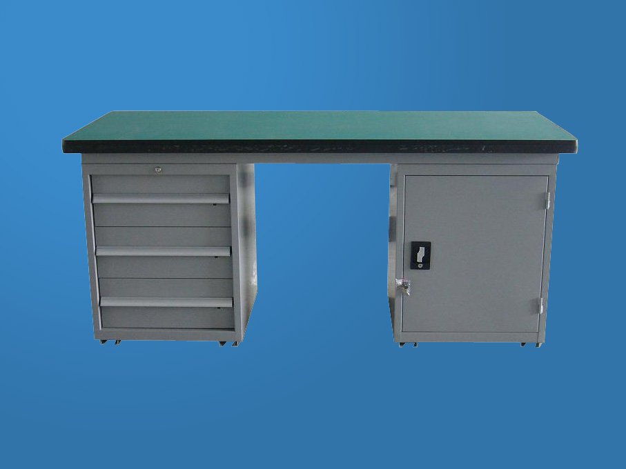 工作台材质采用优质冷轧钢板,表面采用静电喷涂处理而制成,坚固的工作桌框架,牢固平稳,可使工作桌台面均匀承重达到1000kg。桌面有多重材质组成,适用于各行业办公场所。可配合工具柜,吊柜,挂板,单开门柜使用。抽屉、承办承重大,性能好,抽屉里可根据需求配置分隔条。