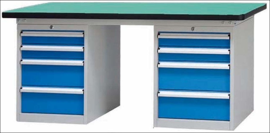 工作台材质采用优质冷轧钢板,表面采用静电喷涂处理而制成,坚固的工作桌框架,牢固平稳,可使工作桌台面均匀承重达到1000kg。桌面有多重材质组成,适用于各行业办公场所。可配合工具柜,吊柜,挂板,单开门柜使用。抽屉、承办承重大,性能好,抽屉里可根据需求配置分隔条。